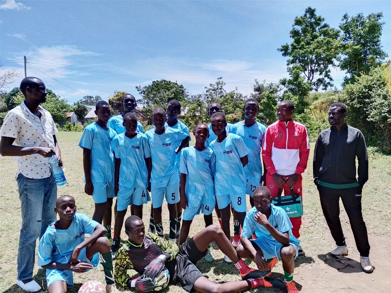 U15 relax for a team photo after 2-1 victory against Kiziwa.